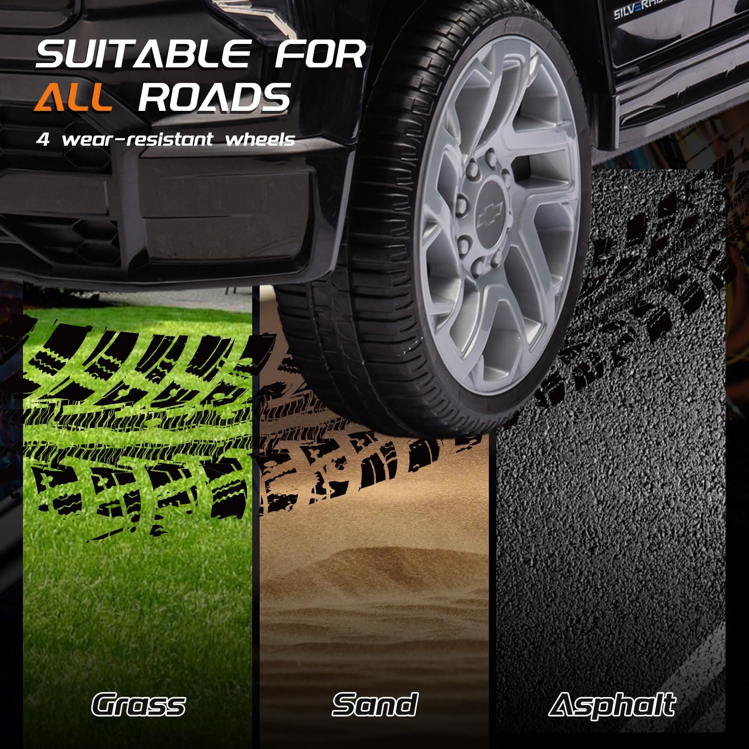The Best Gift For Children: This, Licensed Silverado ride on truck car classic elements of cars in its exterior design, with smooth lines and stylish styling, both in the proportions of the body and in the handling of the details. bring your child the most authentic driving experience, with unlimited driving fun, making every adventure more enjoyable and practical. It is the perfect gift for children’s birthdays, Children’s day, Thanksgiving, christmas, new year and other holidays.