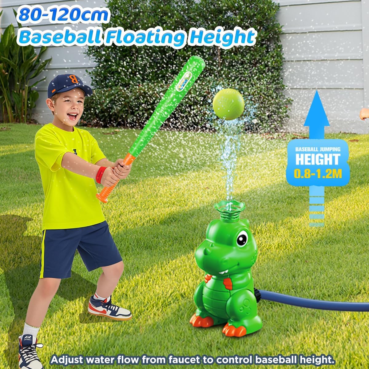 【4-In-1 Water & Baseball Toy】Meet TERRAMUS Dinosaur Water Baseball Sprinkler Toy, the ultimate water wizard! With four epic play modes, our splash baseball sprinkler toy transforms your backyard into a non-stop adventure park. Launch three balls at once for a home run derby, perfect your swing with solo shots, spin into a 360° splash tornado, or unleash chaos with a water ball blitz. Every mode is a new chapter in your summer story, and TERRAMUS Water Splashing Toy for Kids is the ultimate hero who makes every day unforgettable.