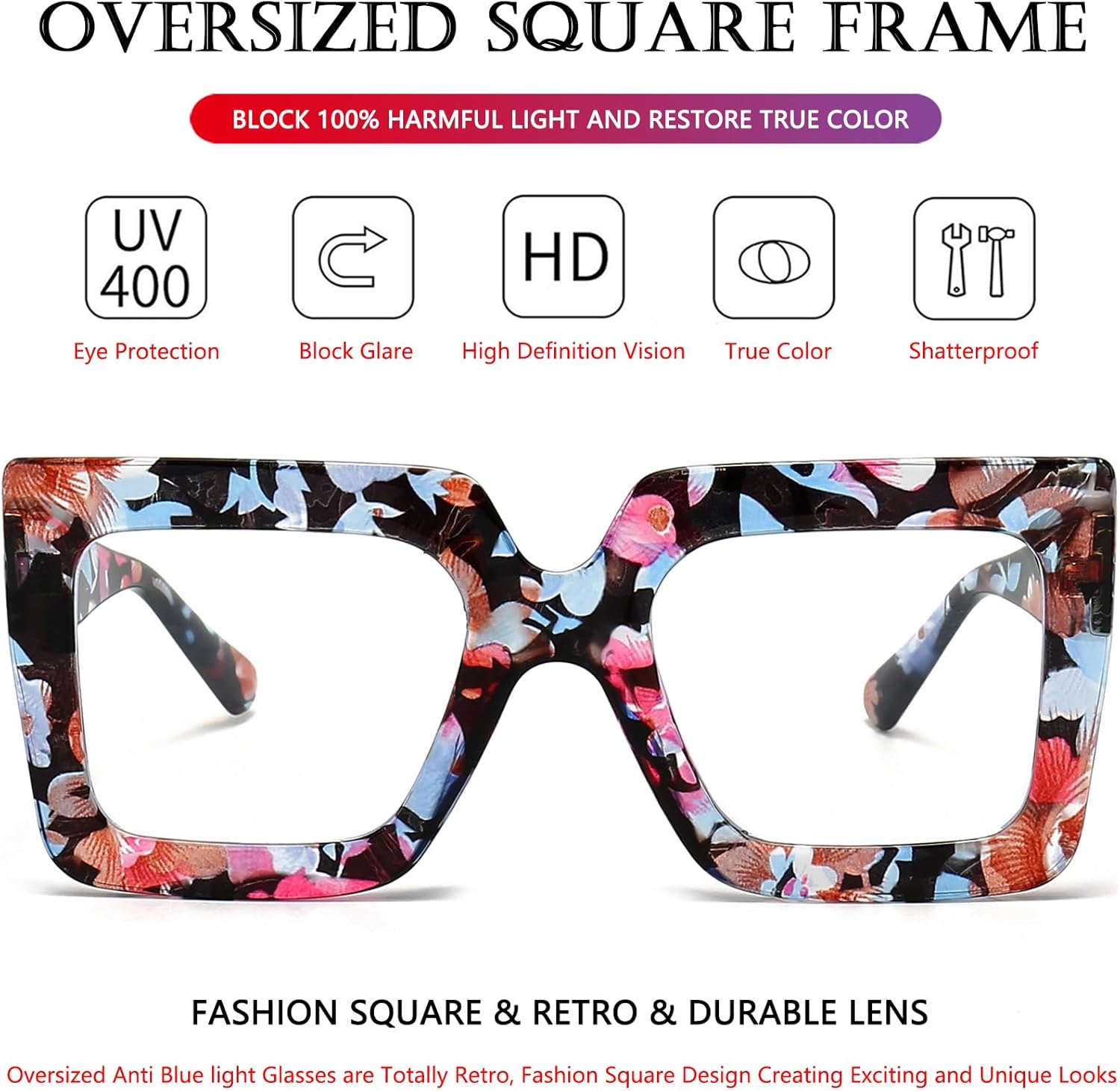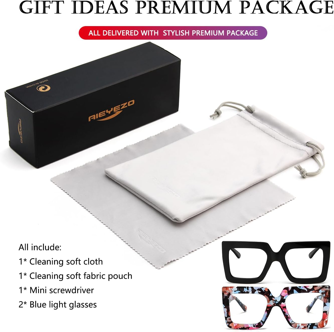 13 reviews for AIEYEZO Oversized Square Blue Light Glasses for Women Cute Big Frame Glasses Fashion Clear Multi-Color Computer Eyewear