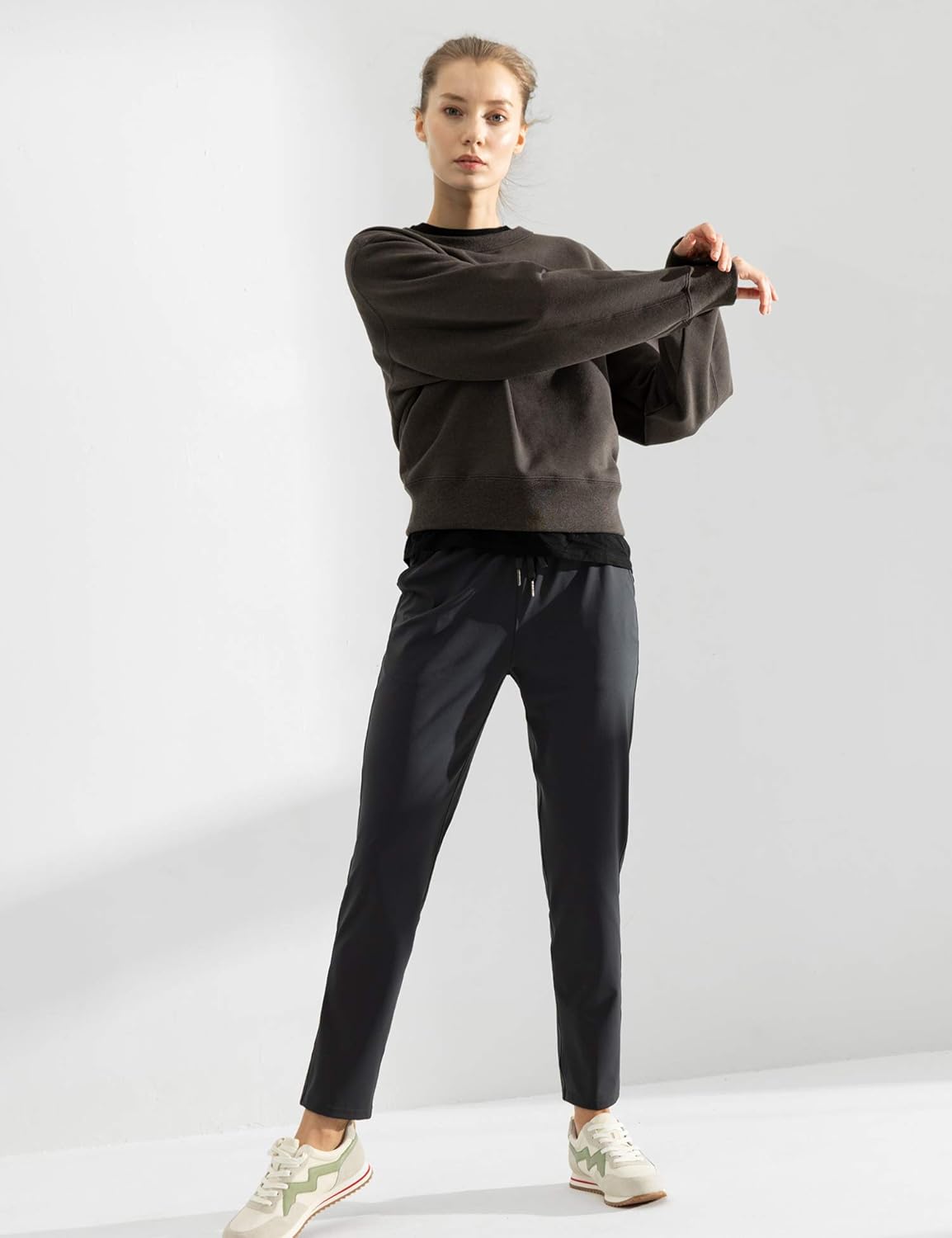 AJISAI Petite/Regular Women’s 7/8 Joggers Travel Pants with Pockets Lounge Casual Stretch pants