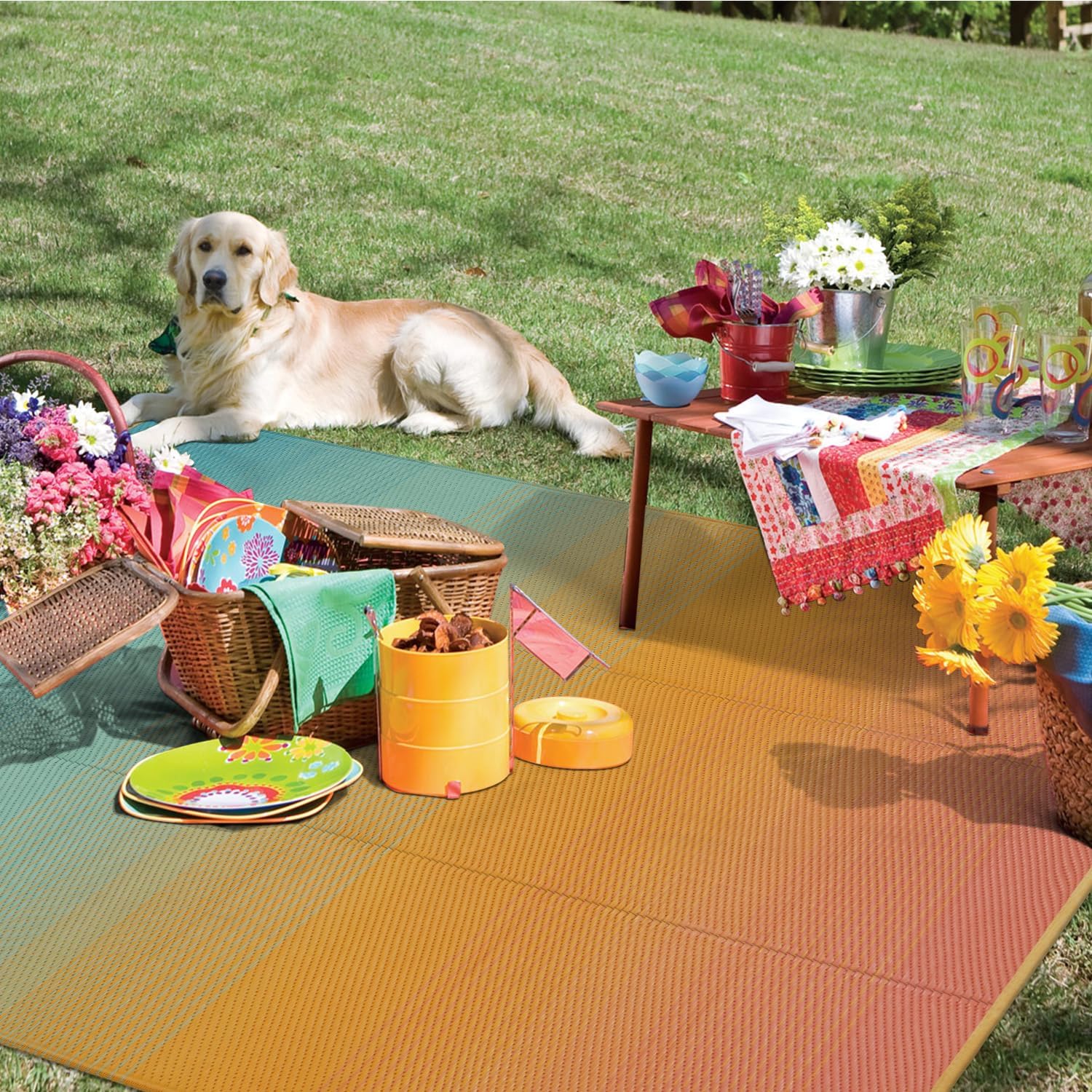 10 reviews for Anidaroel 6x9ft Ombre Outdoor Rug for Patios Clearance, Waterproof Outdoor Plastic Straw Mat, Outdoor Area Rug for Patio, Large RV Outdoor Rugs for Camping, Backyard(Orange&Blue, 6’x9′)