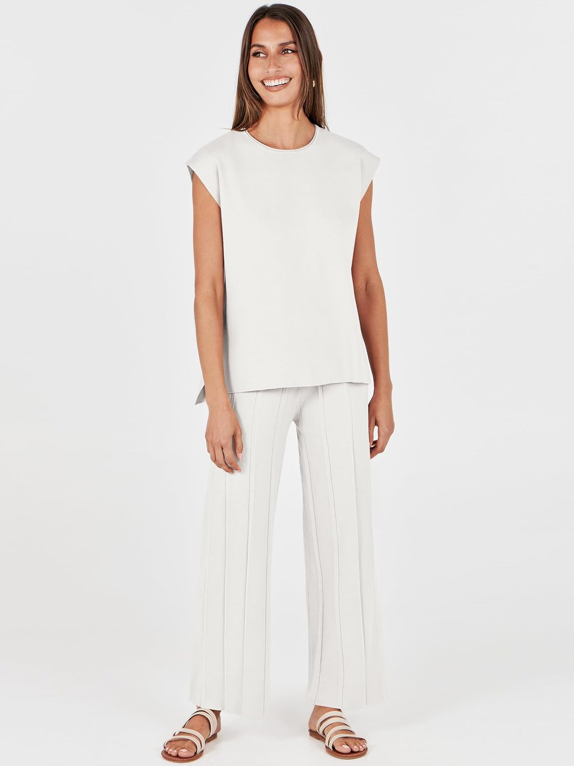 13 reviews for ANRABESS Women 2 Piece Lounge Sets Summer Casual Knit Sweater Vest Pant Set Beach Vacation Airport Outfits Clothes