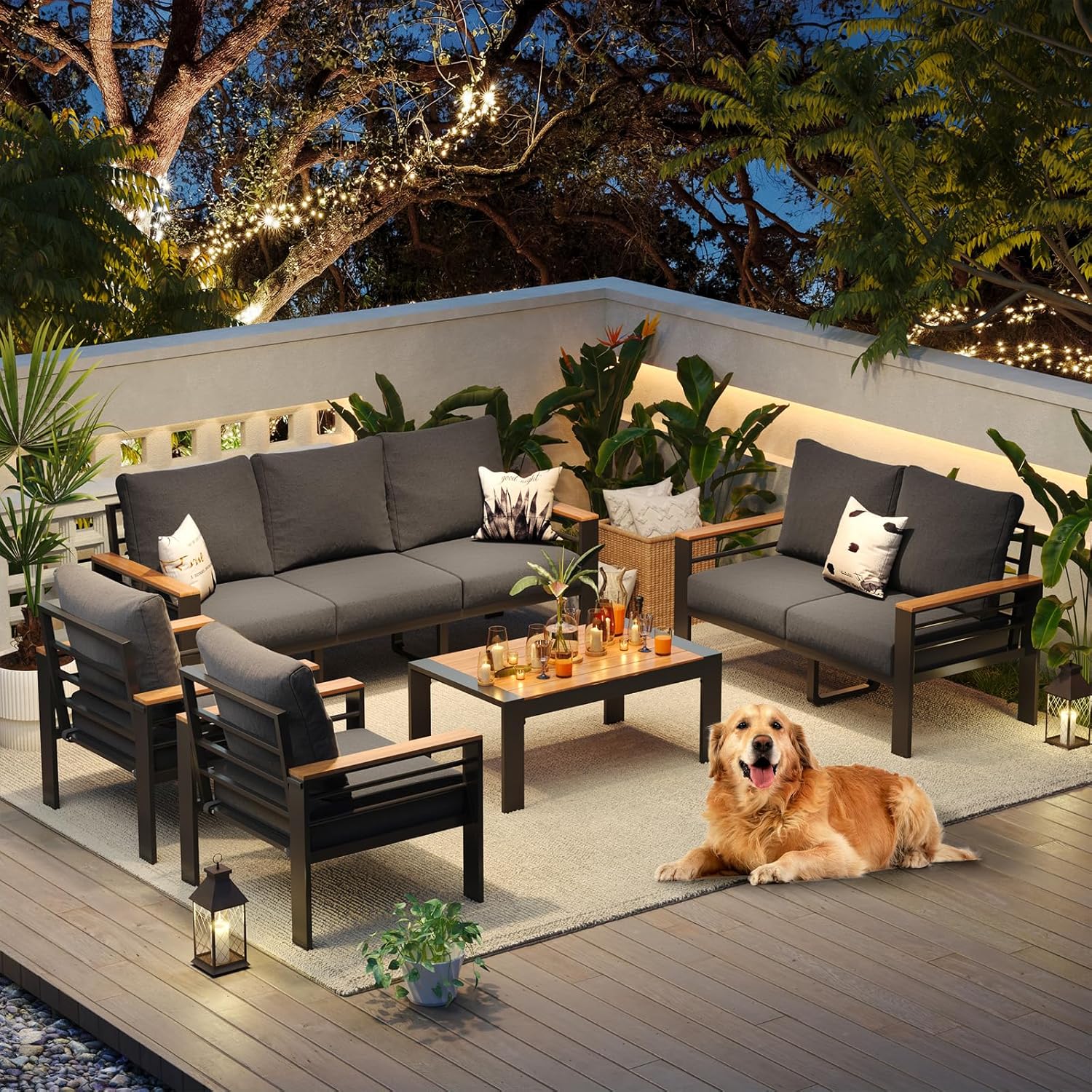 8 reviews for Aoxun Aluminum Patio Furniture Set 7 Seats, Oversized Outdoor Sectional with Washable Thick Cushions, Coffee Table and Waterproof Cover, Patio Conversation Sets for Porch, Balcony, Deck