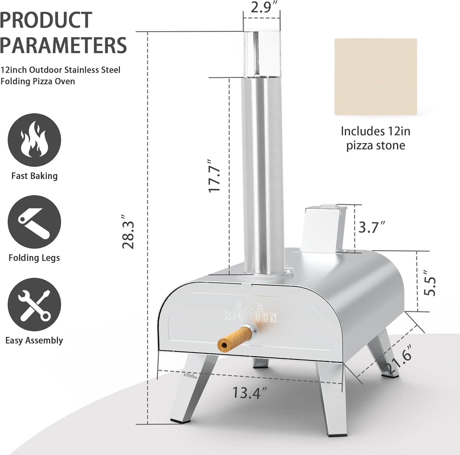 13 reviews for BIG HORN OUTDOORS Pizza Ovens Wood Pellet 12” Pizza Oven Cooking Pizza Maker Portable Stainless Steel Pizza Grill, Silver Portable Party use