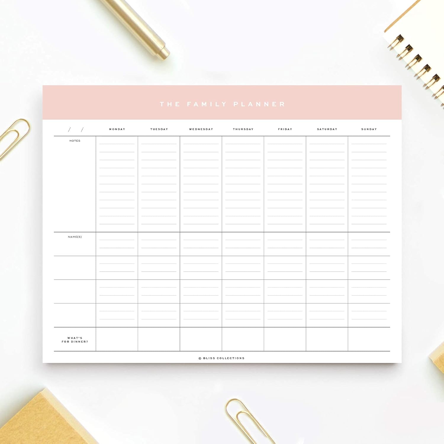 9 reviews for Bliss Collections Family Planner with 50 Undated 8.5 x 11 Tear-Off Sheets – Simple Pink Daily and Weekly Calendar for Planning and Organizing Family Activities, Appointments, Tasks, Chores and Meals