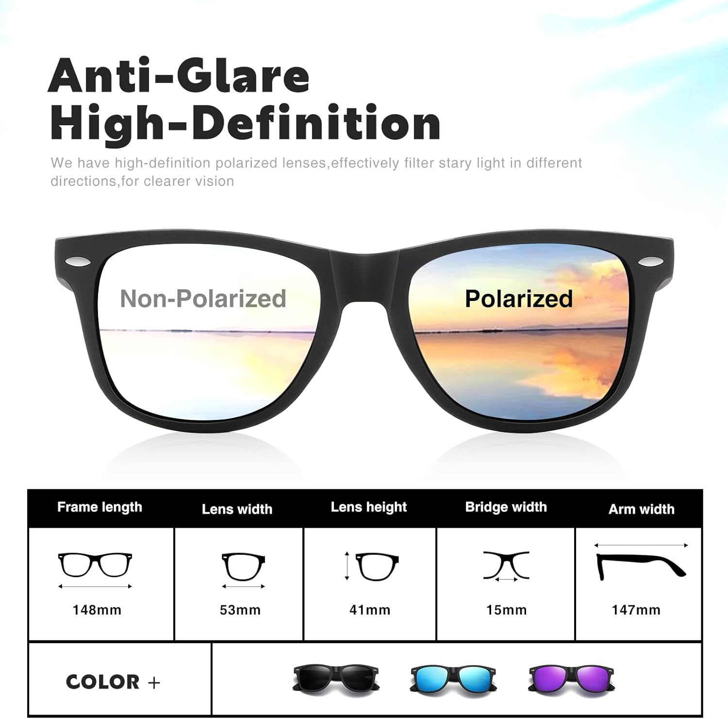 [Polarized Sunglasses for Men/Women]:Featuring HD polarized lenses,our sunglasses reduce glare from roads, water and reflective surfaces while enhancing contrast and color accuracy. Perfect for driving, fishing, water sports, and all outdoor activities, they comfort eye strain and ensure nice visual clarity