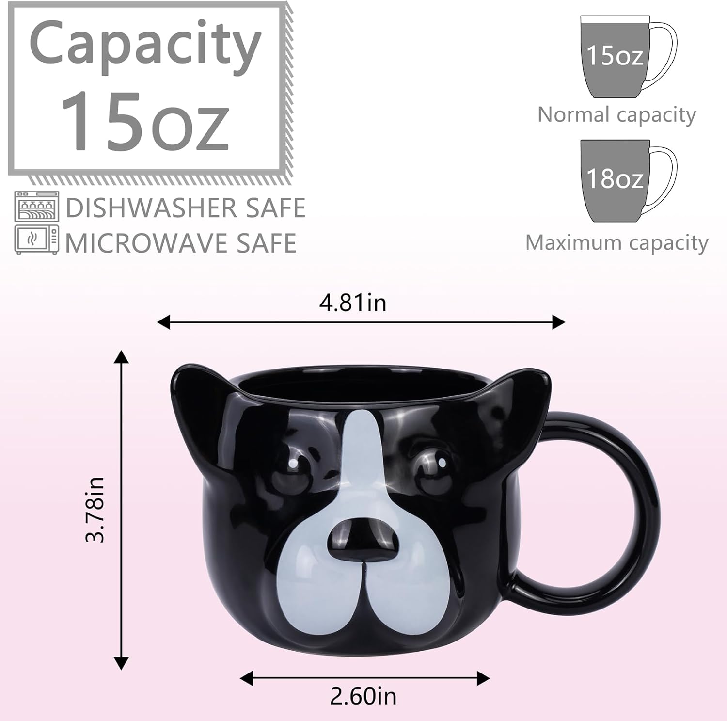 Morning Mug: Enjoy your breakfast with coffee, tea or juice in our novelty coffee mugs, which is perfect for cold and hot drinks.Unique Gift: a ceramic dog mug with novel design, which they can use every day and enjoy for many years. It is also ideal for holidays and special occasions, such as Christmas, Mother’s Day, Father’s Day, Children’s Day, Weddings, Anniversaries, Birthdays, Giving gift, Rehabilitation, Promotions, or buying one for daily use.Note:1. Suitable for microwave oven and dishwasher;2. Suitable for coffee, tea, milk, juice, cappuccino, water, hot chocolate and other drinks.