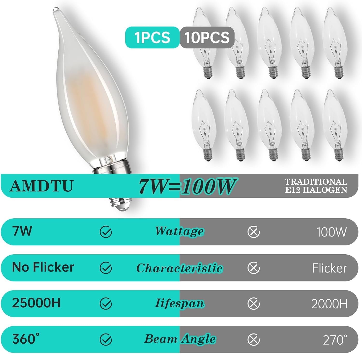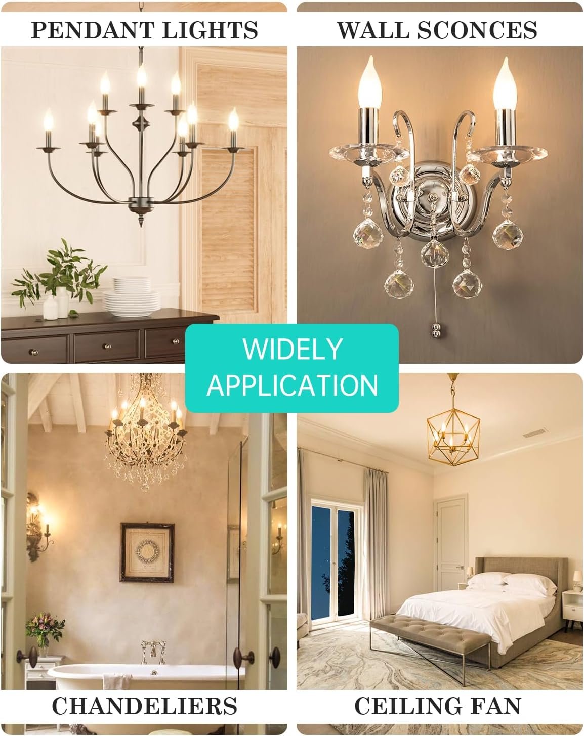 Long-Lasting Durability: Crafted to last up to 25,000 hours, these candle-shaped 7W bulbs are an ideal choice for indoor use. Please note that they’re best suited for dry, indoor areas, as exposure to moisture can reduce their lifespan.