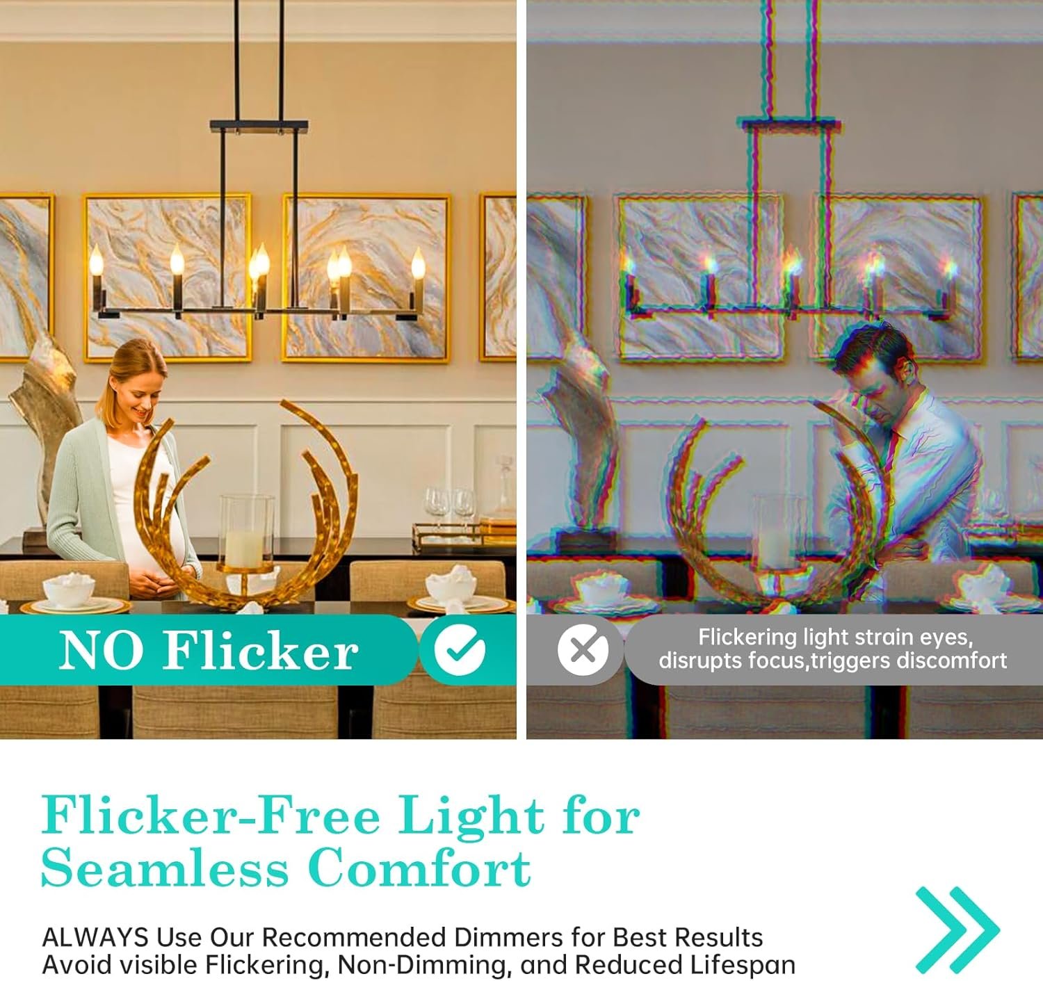 Dimmer Compatibility to Prevent Flicker: Ensure flawless dimming performance with our E12 dimmable bulbs by referring to our comprehensive compatibility guide. This helps you avoid issues like flickering or non-dimmable performance, guaranteeing smooth operation.