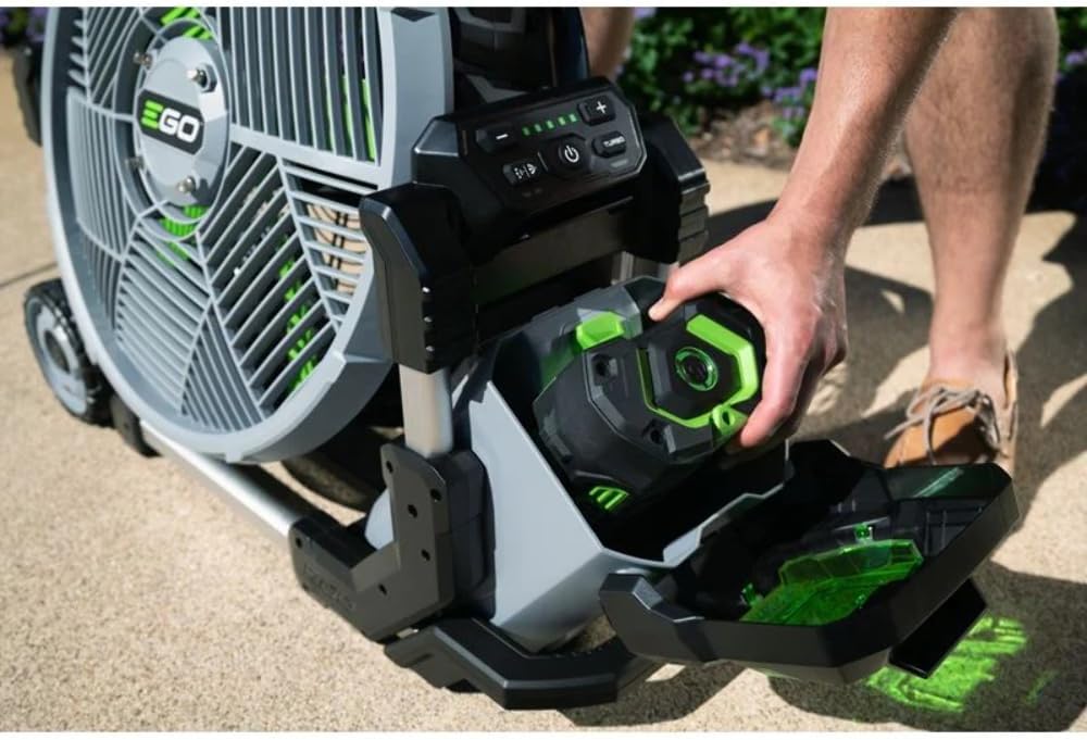 This blows every over battery powered fan out there. This is great when the power goes out. Put it on number 1 or 2 with a 5ah battery and for over 8 hours being used, it only used up 1 bar of the battery (5ah). Must own if you love EGO products and if you don’t have any, you should get them now. They are the best products out.