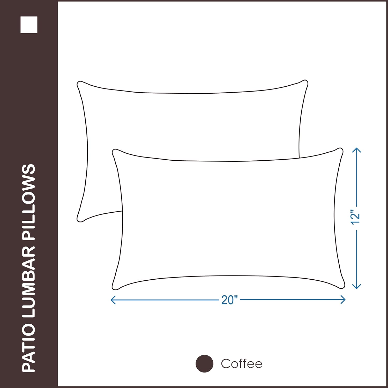 Indoor Outdoor Lumbar Pillows,Waterproof Outdoor Pillows Set of 2 for Patio Furniture,12×20 Inch,Coffee