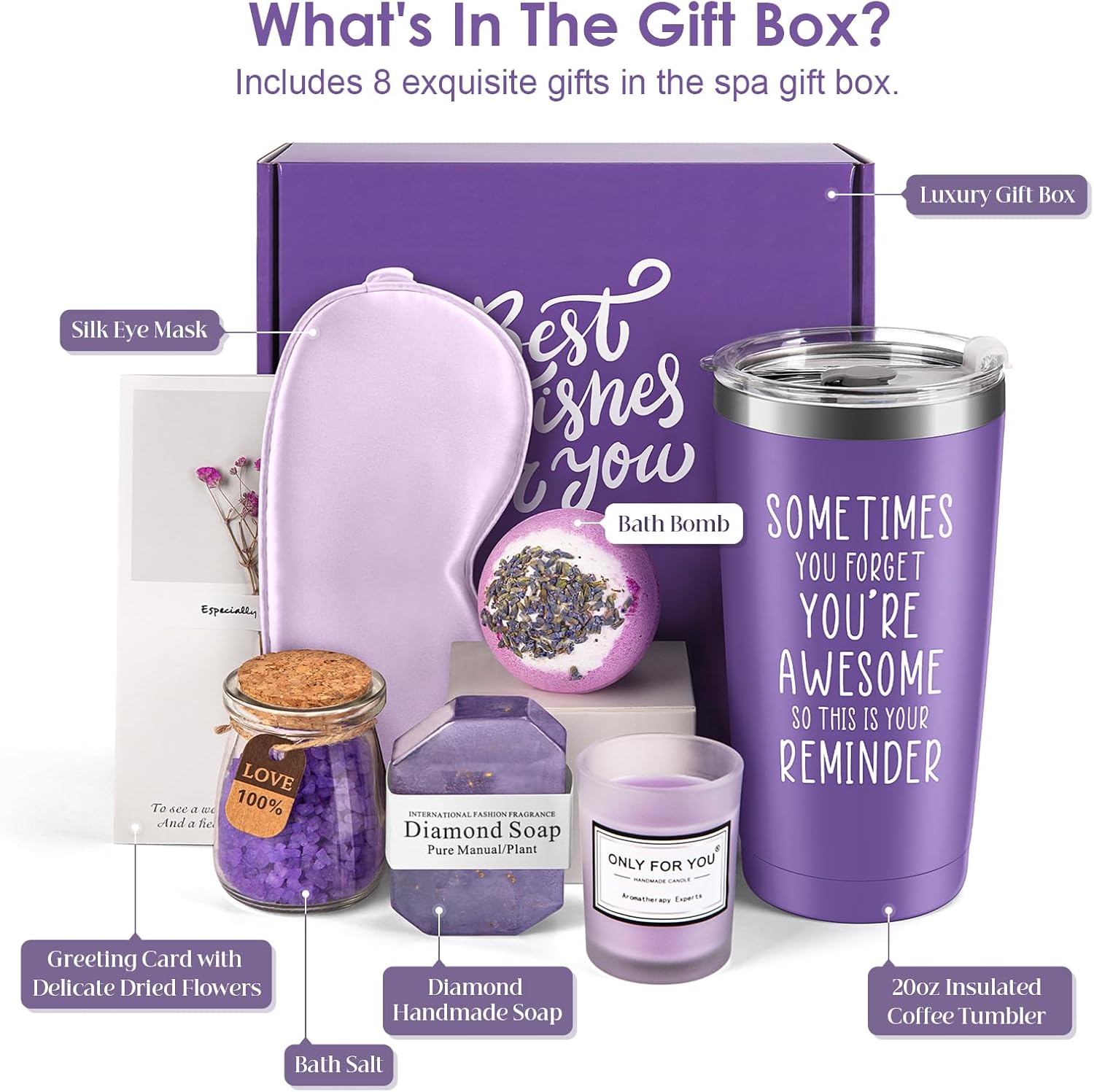 10 reviews for Jekeno Birthday Gifts for Women Girls – Mothers Day Gifts for Mom Wife Christmas Presents for Sister Female Friends Girlfriend Nurse Her Lavender Relaxing Spa Basket Purple Gift Box Mug Tumbler Set
