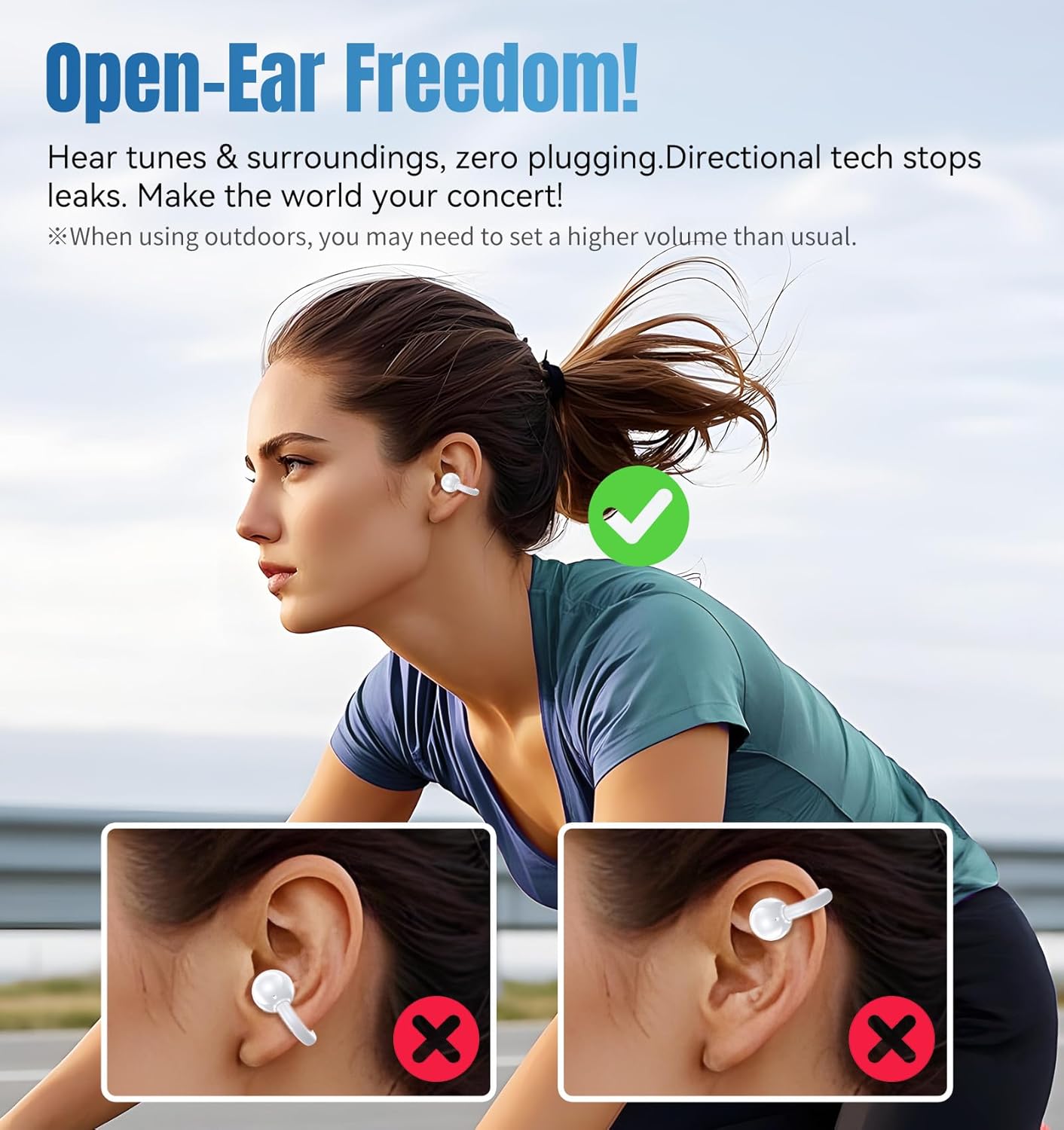 Crystal Clear Calls with Advanced Noise Cancelling: Never miss a word with our state-of-the-art ENC noise cancelling technology. These wireless Bluetooth earbuds deliver crystal-clear calls even in windy environments. The dual sound wave directional transmission effectively eliminates sound leakage, making our open ear earbuds perfect for clear communication.
