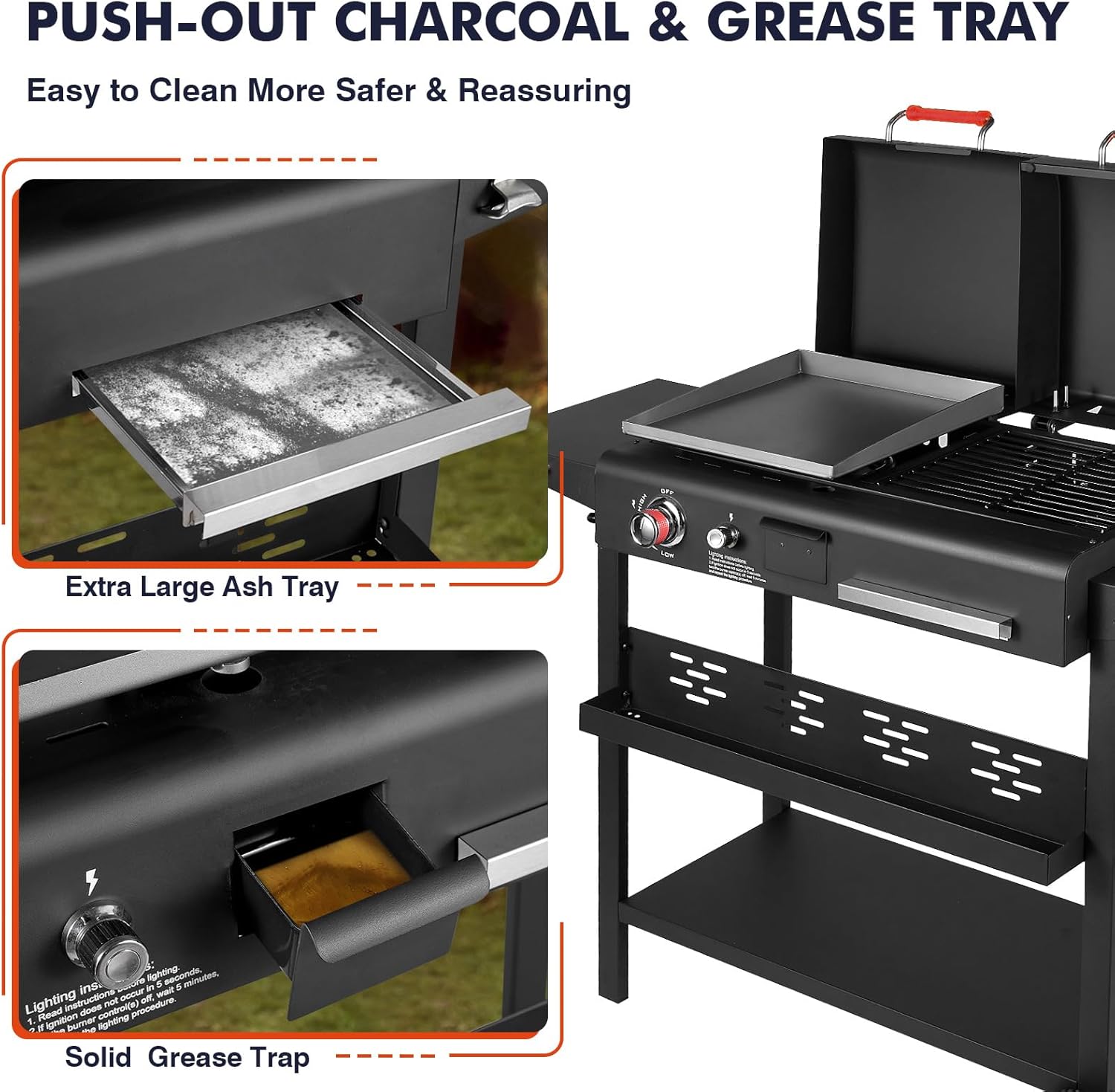 [♦Flexible design & easy cleaning] Different dishes can be efficiently cooked at different ratios of temperature. The lower grease collection slot and sliding ash tray design make cleanup easy and convenient, allowing you to focus more on enjoying your meal.