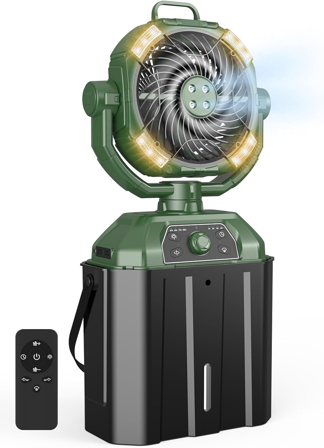 This portable misting fan is a game-changer for outdoor activities! The 6L water tank provides a steady stream of cooling mist that keeps me refreshed on scorching days. The 20,000mAh rechargeable battery is incredibly long-lasting, ensuring you stay powered up through extended camping trips. The built-in LED lantern offers just the right amount of light for nighttime use, brightening up your tent without being too harsh. Plus, the remote control lets you adjust the fan speed and mist settings effortlessly, and the fan oscillates automatically for even coverage. Perfect for any outdoor adventure!