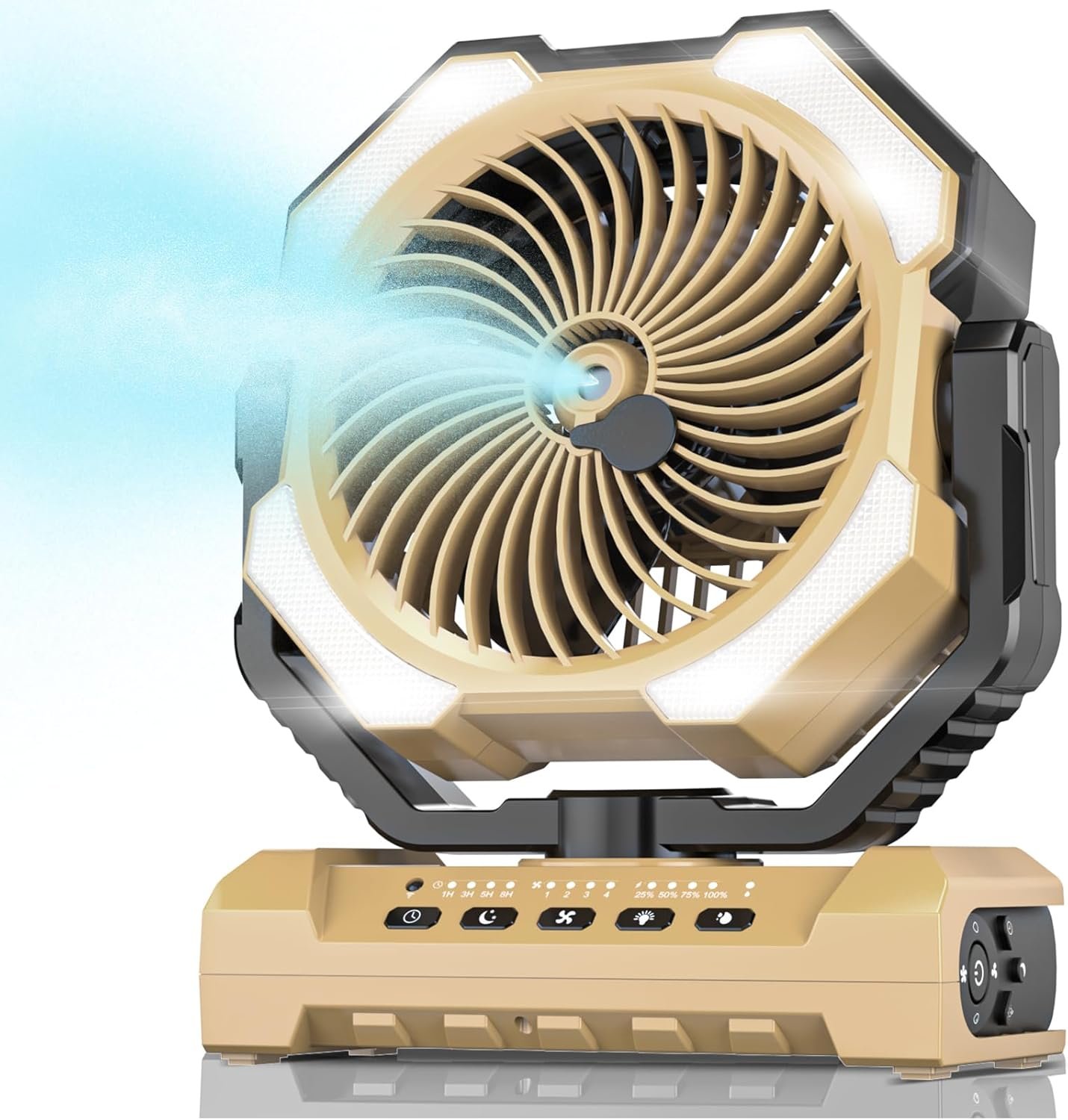 This was the right tool for our hot camping trip. A fan, lamp, mister, as well as a power bank in this single package. It even includes a couple conveniences such as a remote and a hanging hook. Another plus…it has a strong lasting battery for a budget price. If you (like us) are looking on taking that summertime trip and need an all-in-one solution…definitely consider this product. Did not disappoint.