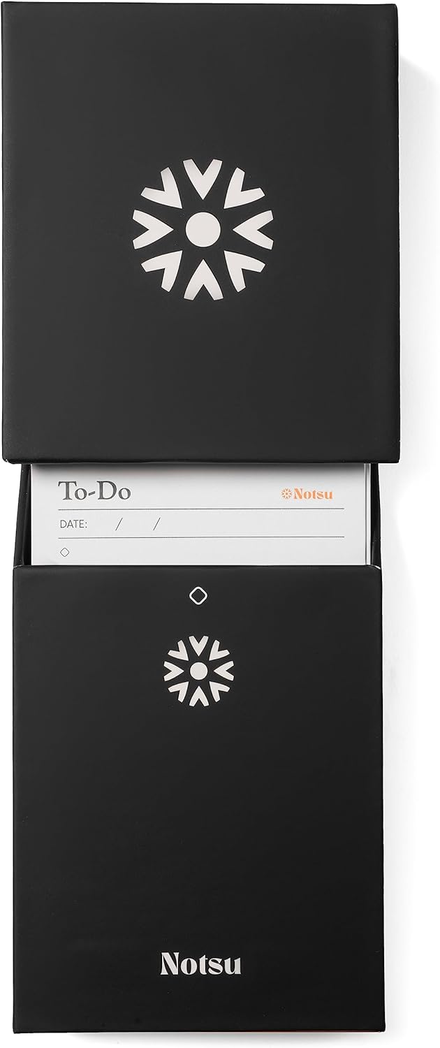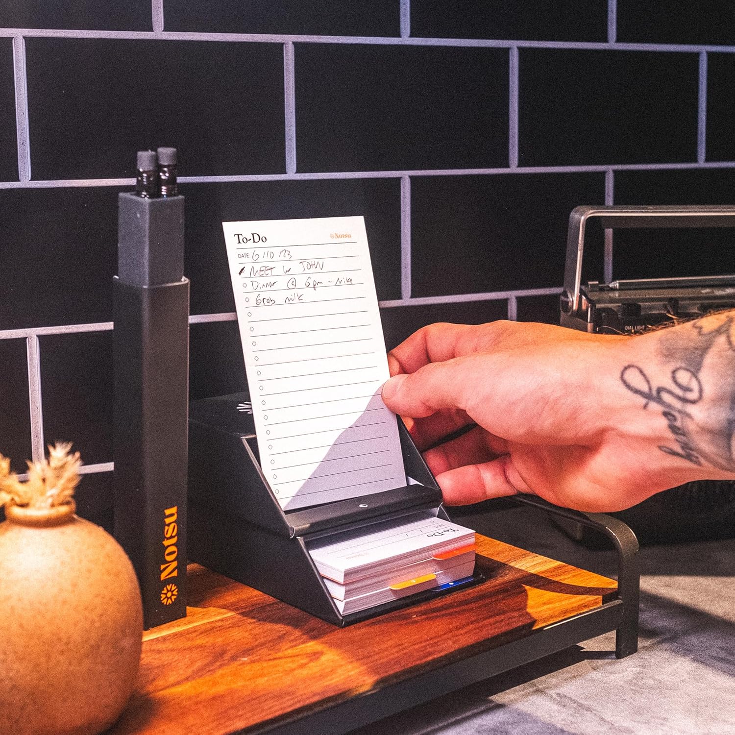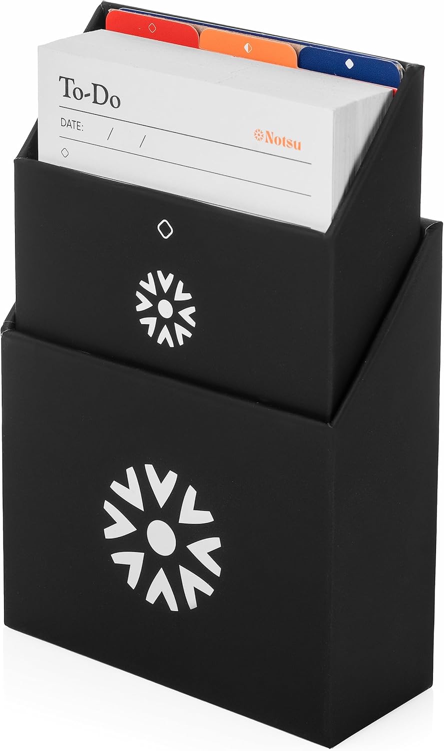 9 reviews for Notsu Centre Rise To Do List Card Box Set | 50 Foldable To-Do Vertical Notecards 3×5, Productivity Index Card Organizer Tab Dividers, Desk Card Holder Stand (Black)