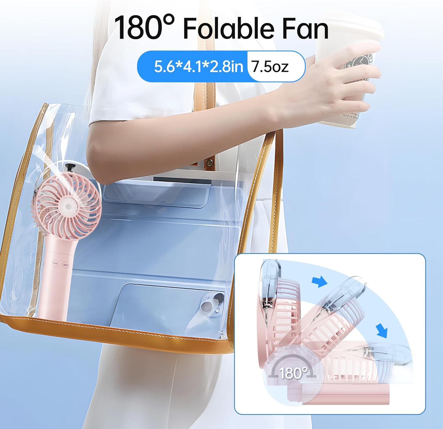 Enhanced Cooling with Misting: Equipped with a 25ml visible mister spray tank and included 60ml water bottle, the small handheld fan sprays an ultra-fine cool mist into the airings and moisturizes the skin, cooling you down faster at home or outdoors