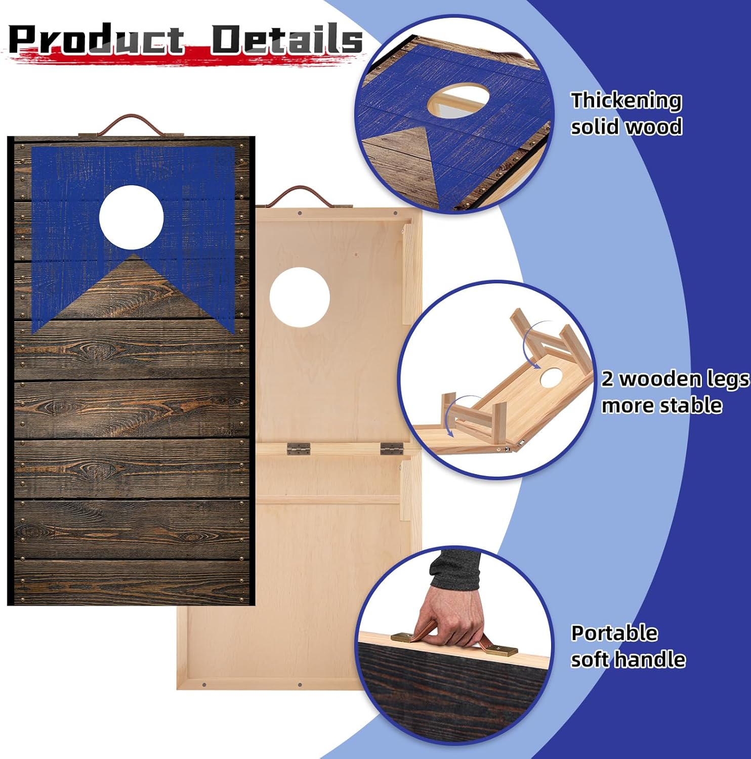 Heavy Duty Solid Wood Cornhole Boards: Made from high-grade solid wood board with foldable double stand, which means our 4 wooden legs cornhole boards are more stable than other single stand boards