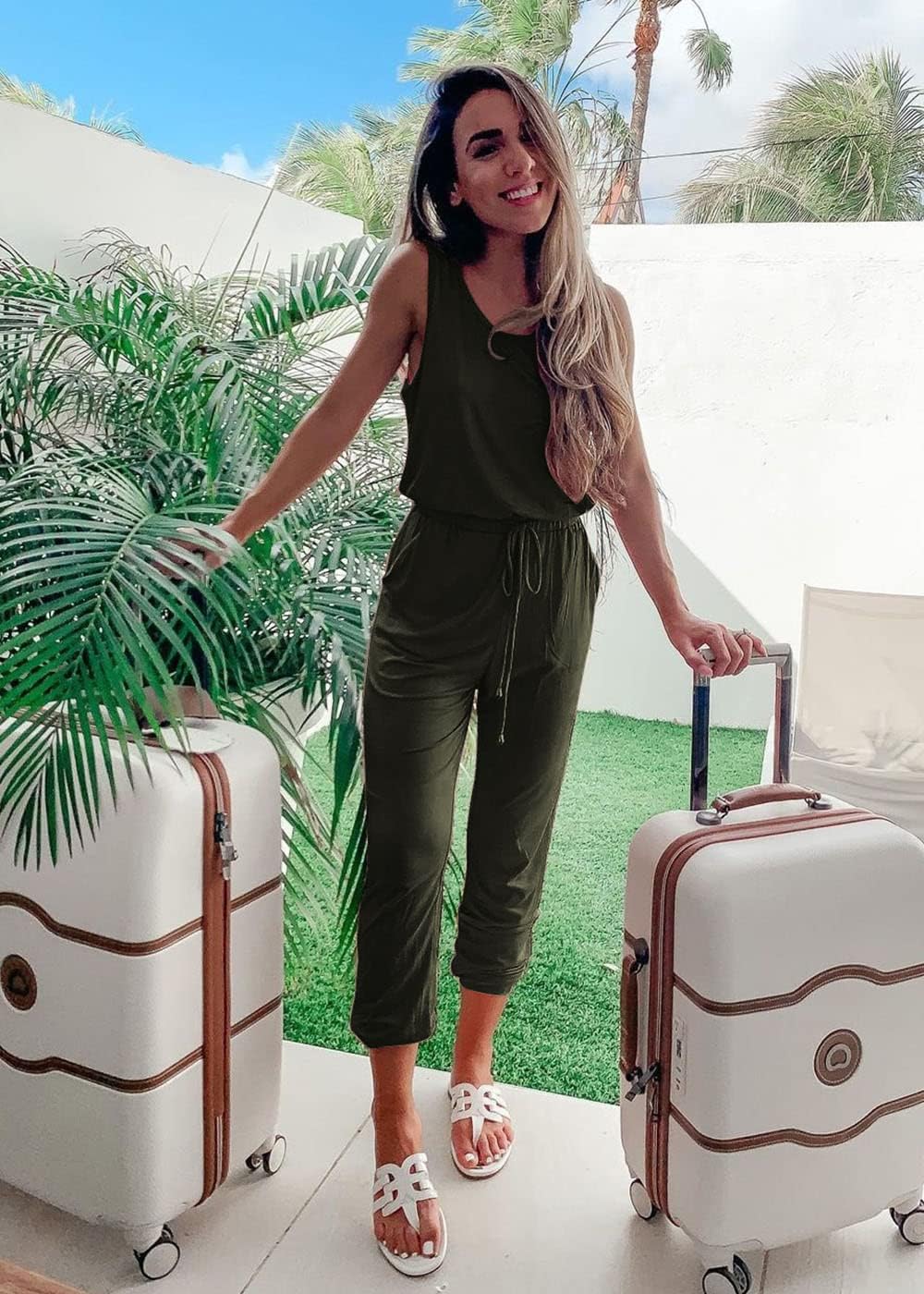 When I tell you I am OBSESSED with this set! It is so soft, light and perfect for summer! Such a cute and easy outfit for a day of running errands or for travel. Buying another color right now! For reference, I am 5’7″, 125lbs and purchased a small. It fits perfectly.