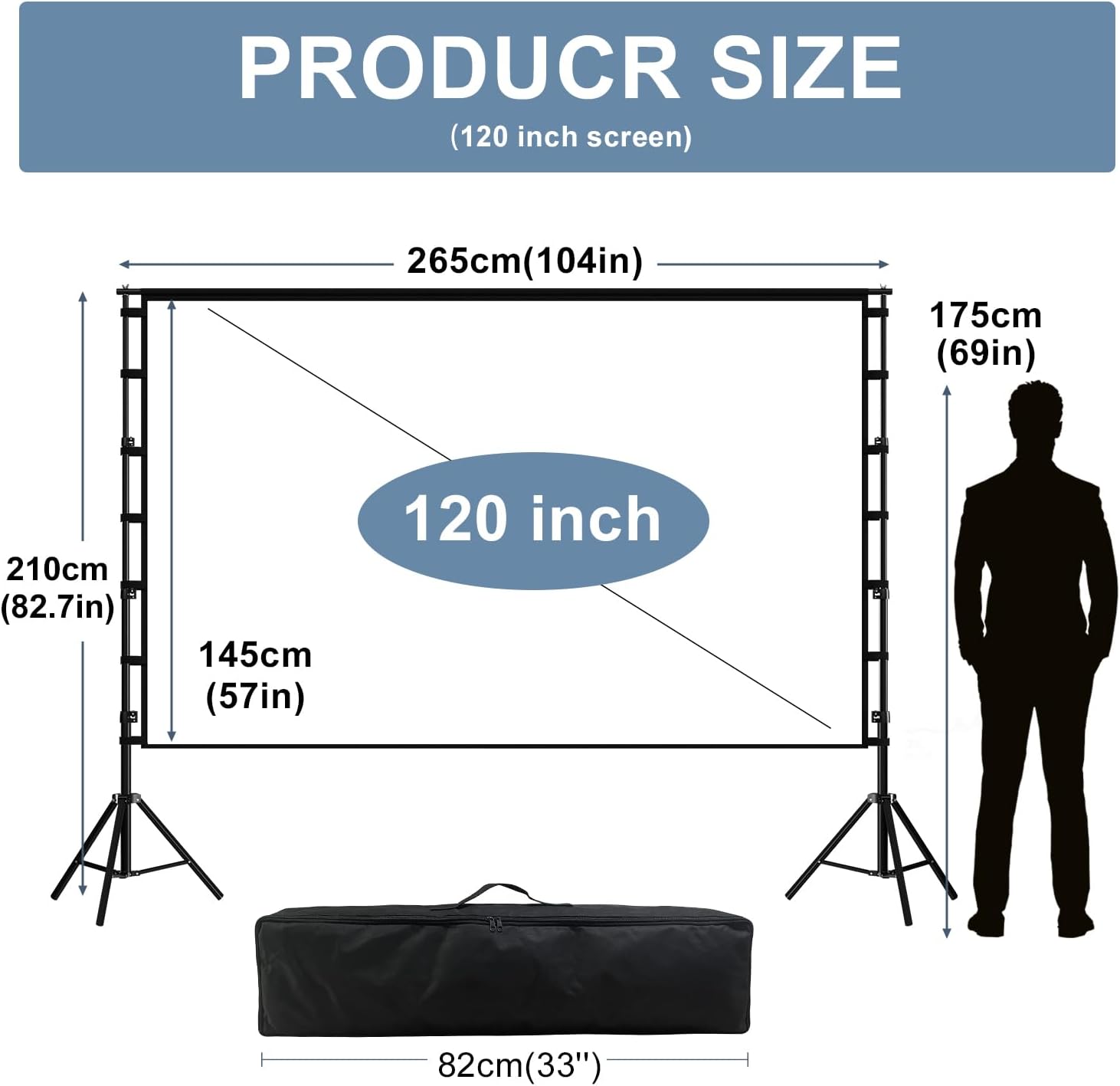 Excellent Projection Display: This 120inch Movie Projector Screen with Stand, 16:9 Aspect Ratio, and 160 Degrees wide Viewing Angle. The Portable Projector Screen will Become your Projector and your Best friend. The Movie Projector Screen is Designed to Provide Clear, High-resolution images, Rich colors, and an excellent viewing experience in different viewing positions.
