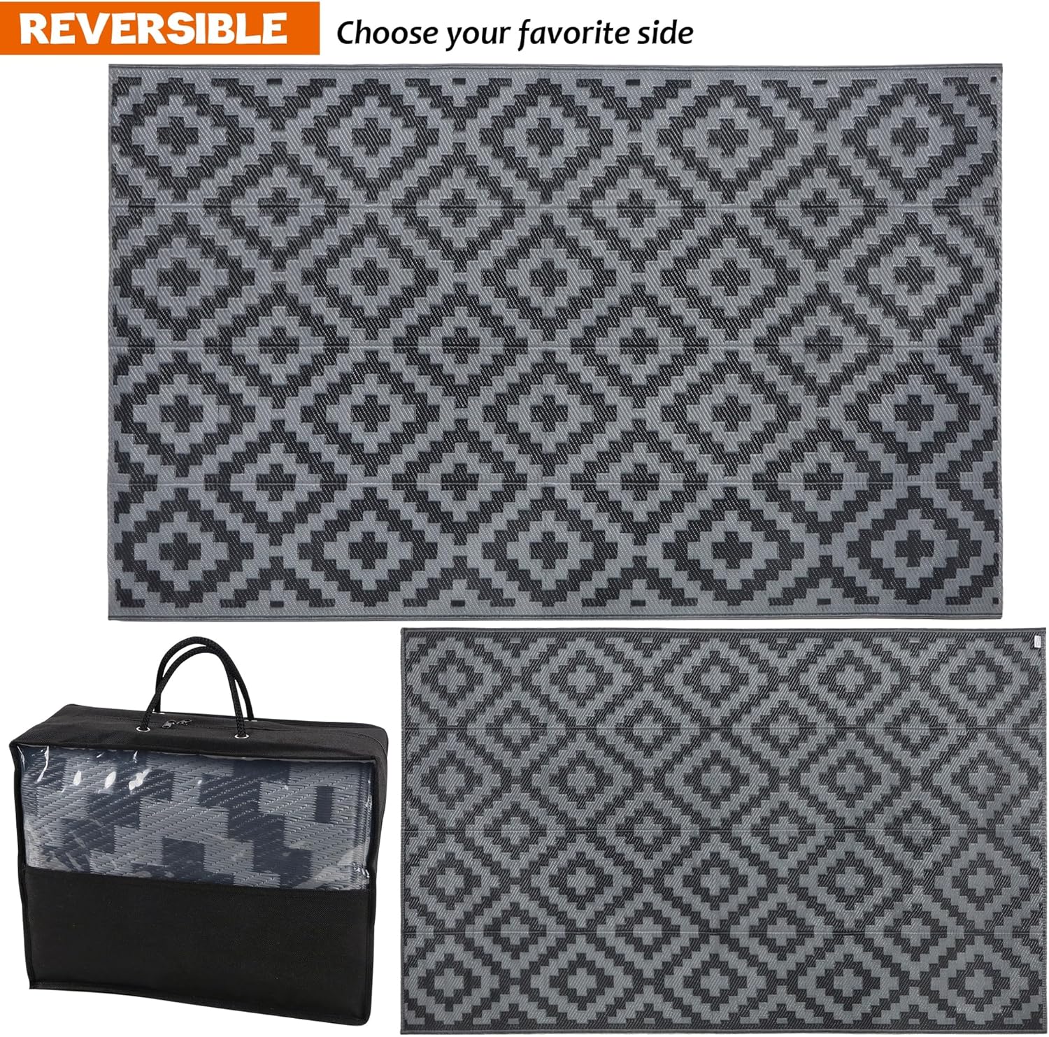EASY CLEANING & PORTABLE: For a quick clean simply sweep away dirt with water and airing it dry. Reversible outdoor rugs can be folded into compact size for easy storage, it comes with a carrying bag for added convenience. Suitable for an afternoon outing or an RV road trip.