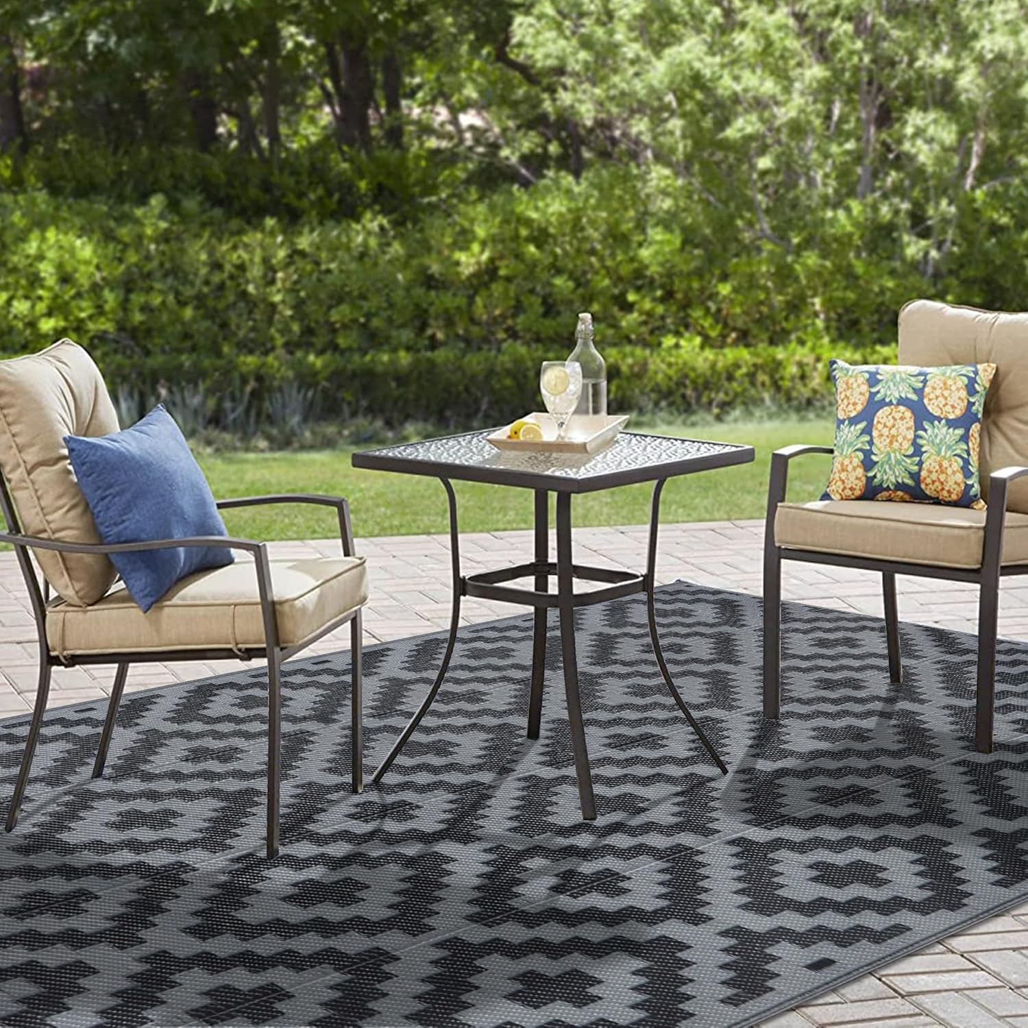 REVERSIBLE MATS: With timeless design, this plastic patio rug is elegant as it is functional, use on your patio with outdoor furniture and accessories to show off your personal style.