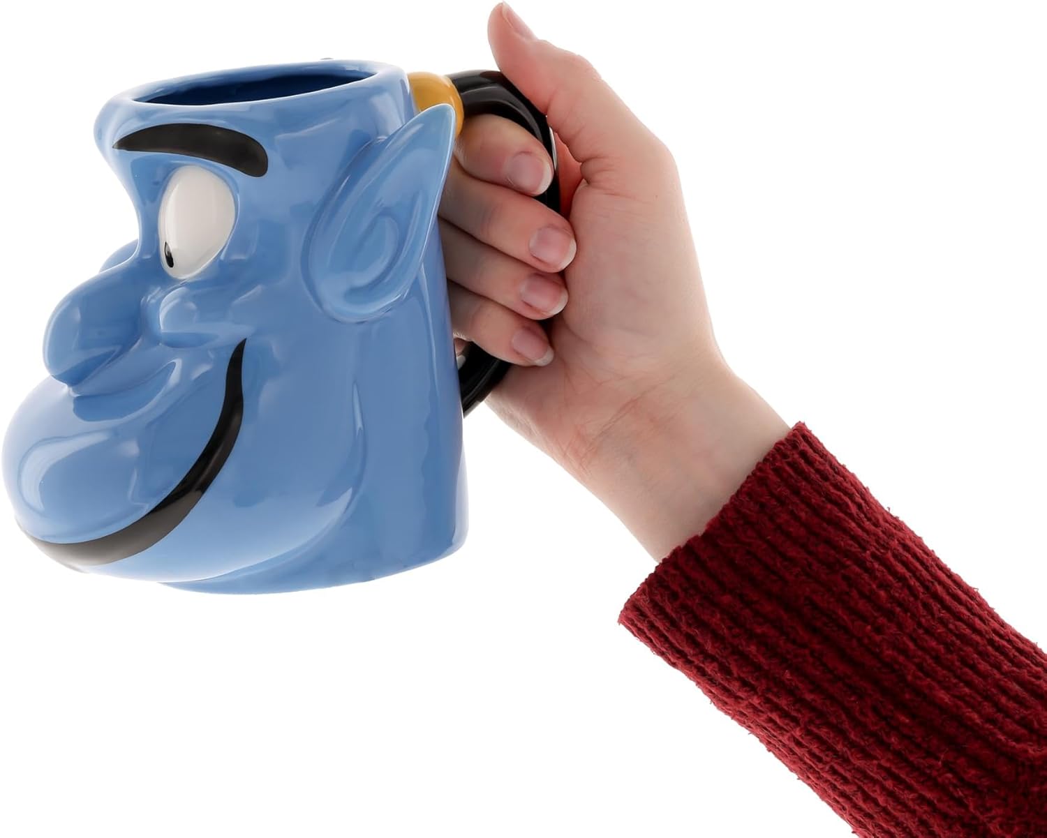 3D SCULPTED MUG: Our 3D sculpted coffee mug holds 20-ounces of your favorite beverage and features the iconic Genie from Disney’s Aladdin adorned in blue
