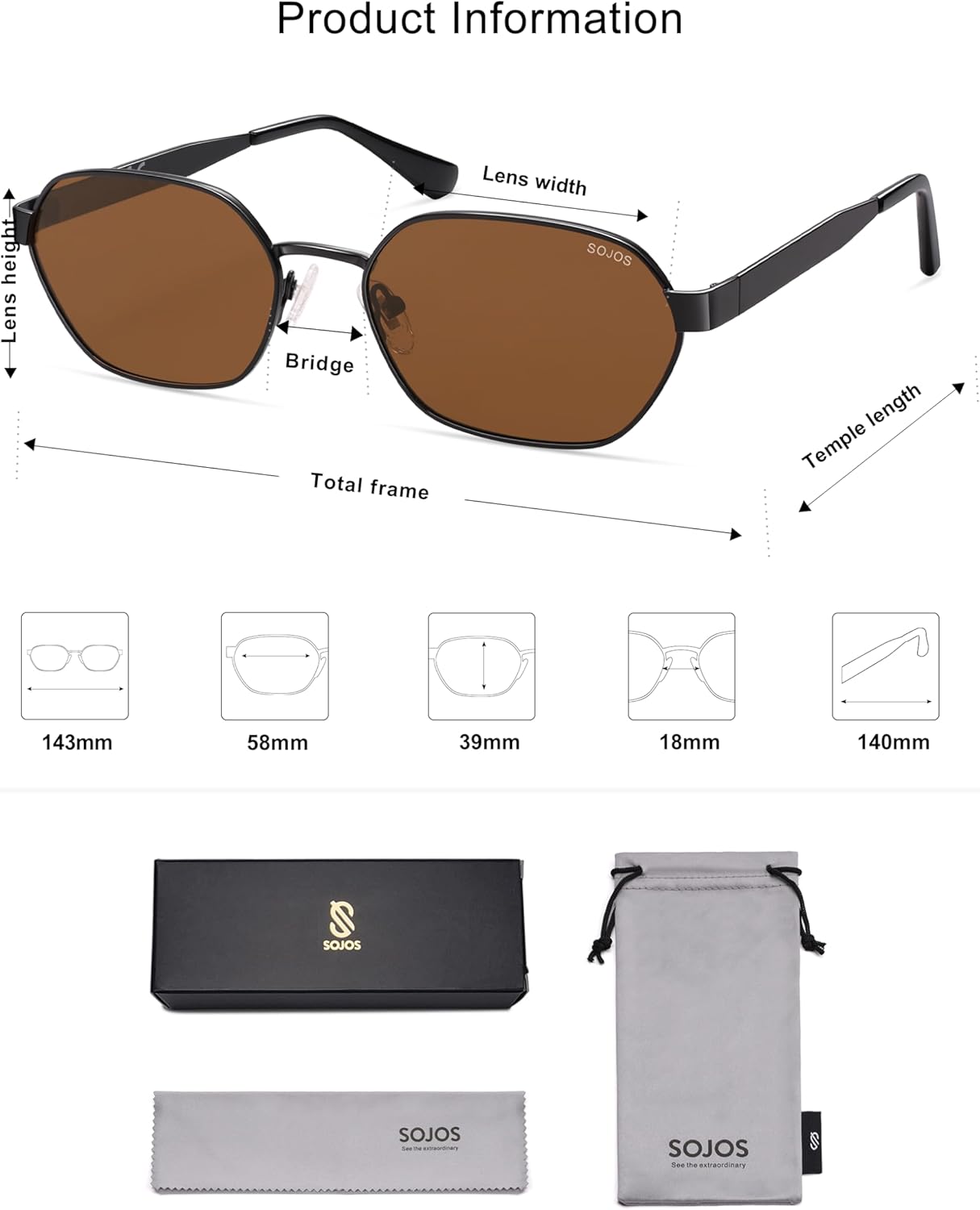 13 reviews for SOJOS Trendy Polarized Hexagon Sunglasses for Women Men, UV400 Retro Rectangle Shades SJ1238