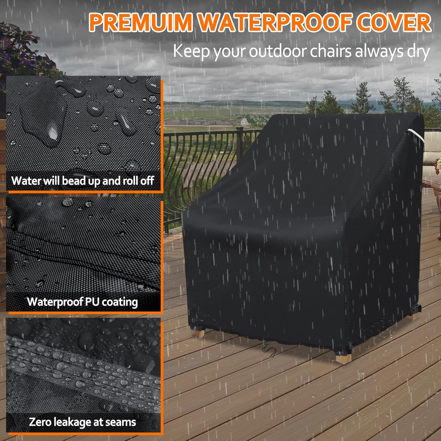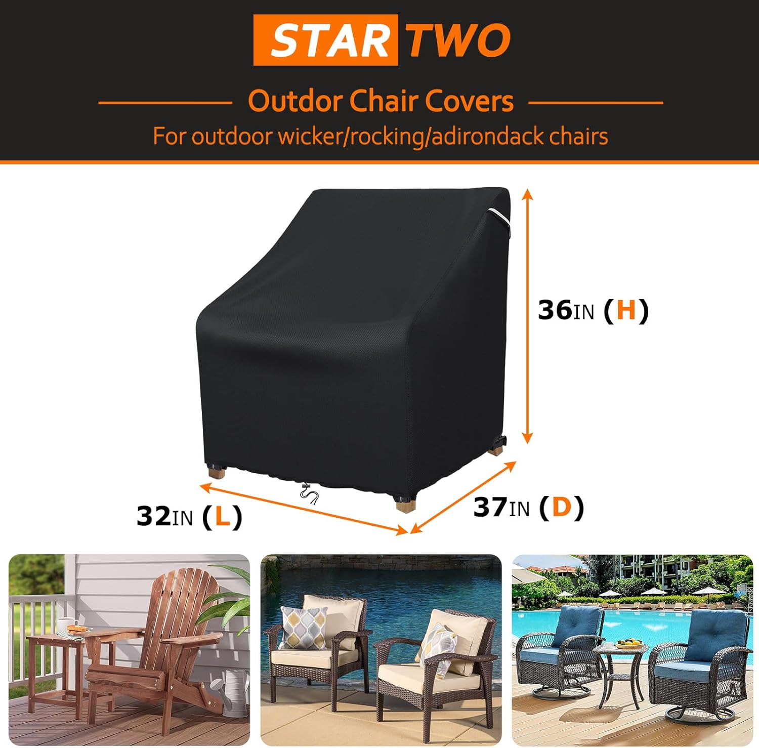 ULTRA PROTECTION- STARTWO patio chair cover is made of 100% heavy-duty 600D Oxford fiber to protect your patio furniture from outdoor elements like sun, dirt, rain, and snow. The Oxford fabric with an added water-resistant coating and a water-resistant laminated backing could prevent water from seeping through the Cover and keep your outdoor furniture dry and ready to use.
