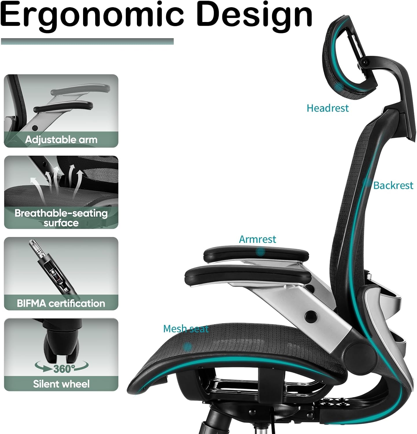 Ergonomic Office Chair – The office chair offers a golden ratio of 7 support points (head/neck/shoulder/back/lumbar/hip/hand). The ergonomic chair is suitable for height 5’5″ to 6’2″, easily adjustable seat height, headrest, backrest and flip-up armrests to meet different needs for long time sitting.