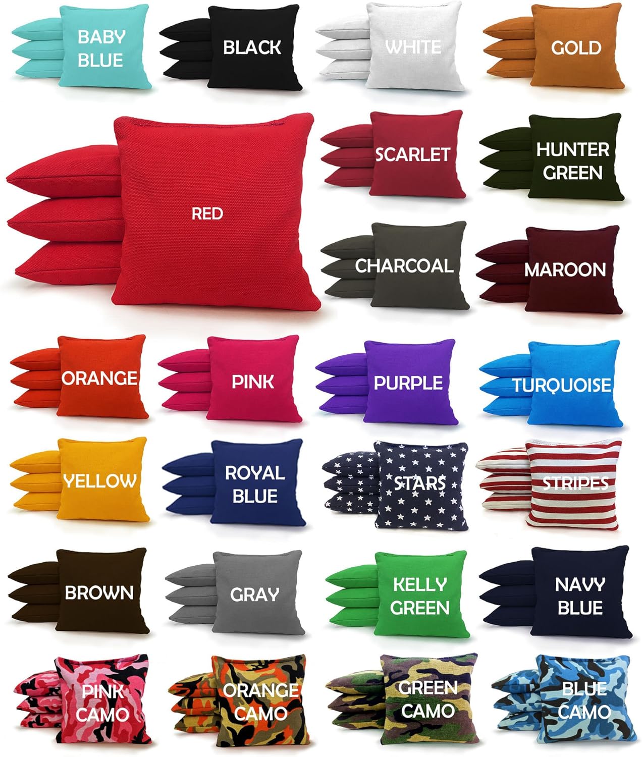 INCLUDES 8 BEAN BAGS & CARRYING TOTE – Each Set comes with 8 Regulation Size Cornhole Bags (4 of each color). Bags Measure 6”x6” and are Filled with 15-16 ounces of Whole Kernel Corn. Made with Heavy Duty 12 oz Duck Canvas & Double Stitched for Extra Durability.