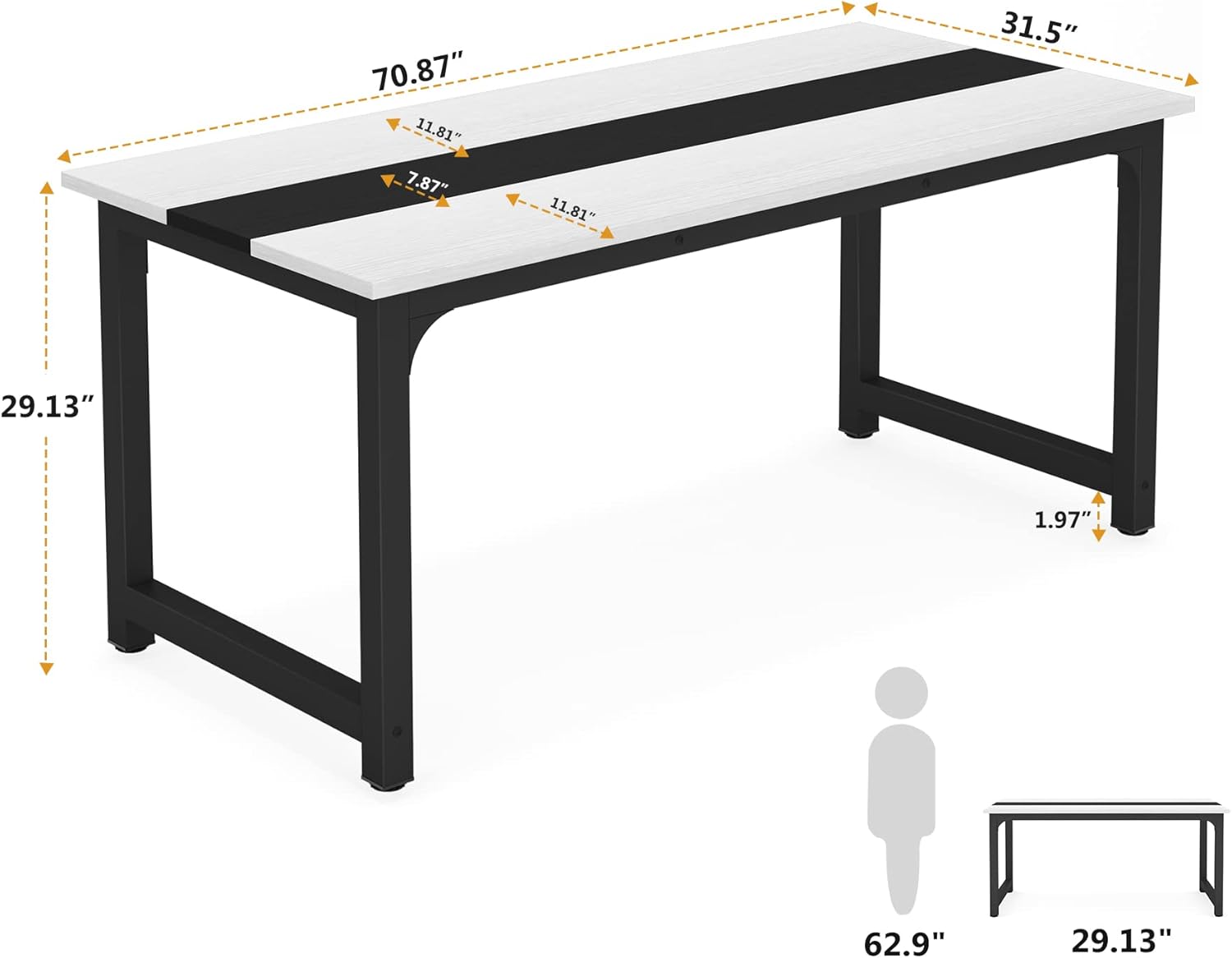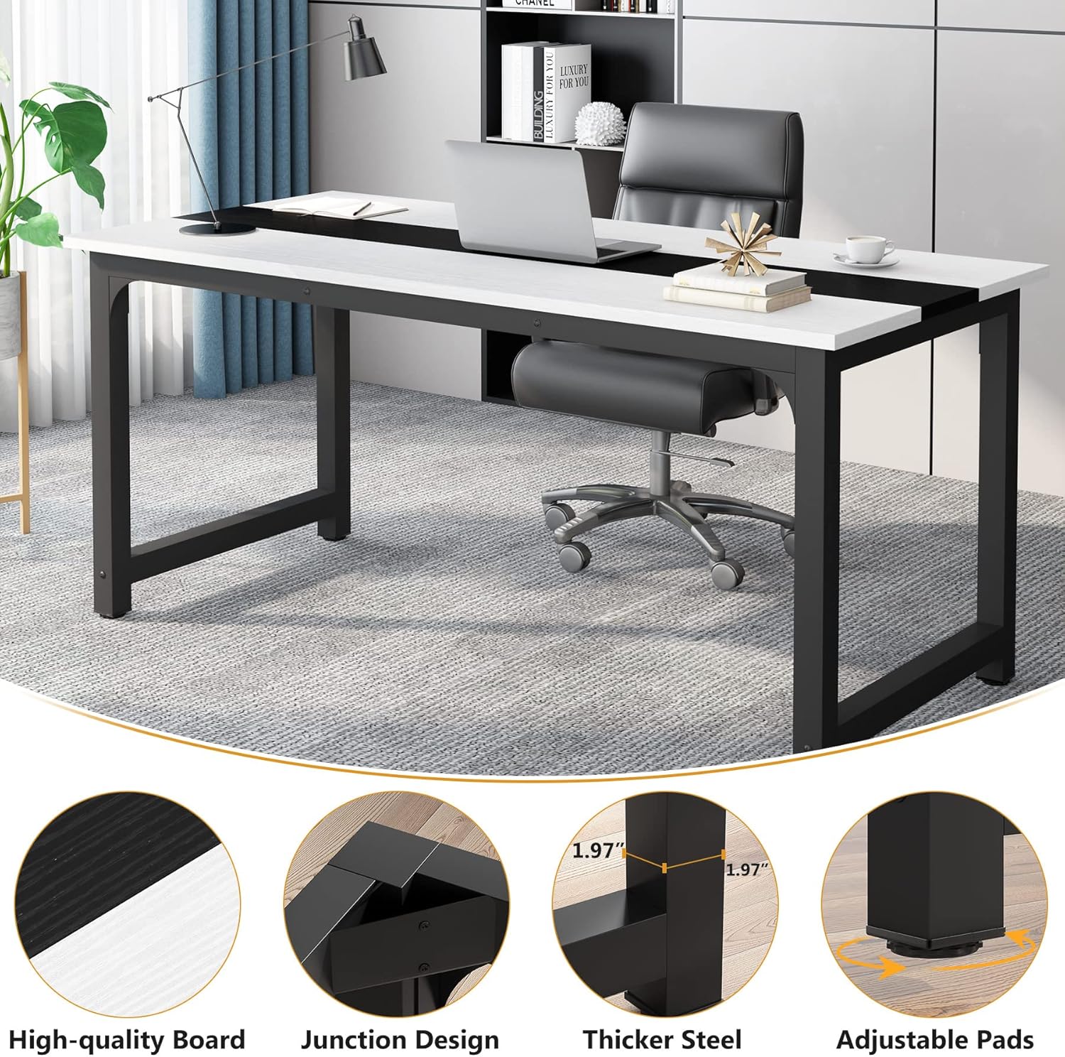 13 reviews for Tribesigns 70.8”Executive Desk, Large Office Computer Desk with Thicken Frame, Modern Simple Workstation Business Furniture for Home Office, White/Black