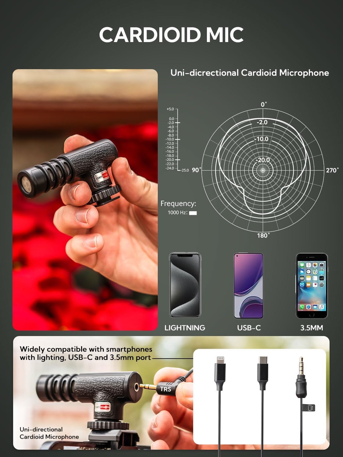 WIDE FIT FOR SMARTPHONES-VLOG K4 is an essential smartphone vlogging kit including two cables including an adaptor cable, the microphone is not only compatible with iPhones like iPhone 16/15/14 Mini/Pro/Max but also with other Android smartphones. A complete YouTube starter kit, vlogging kit, blogger kit for traveling, sporting, live streaming, and more.