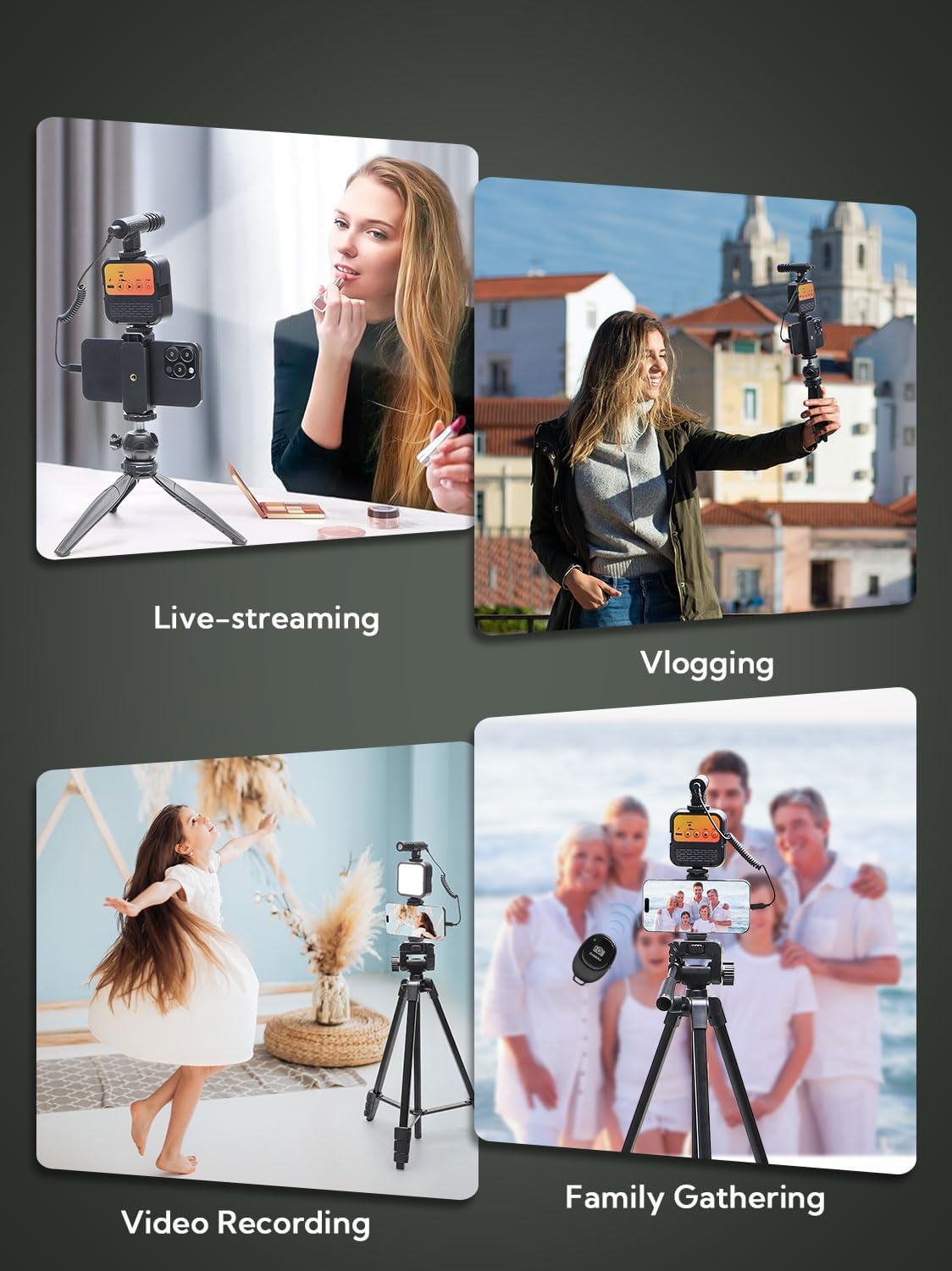 10 reviews for Vlogging Kit for iPhone Youtuber Starter Kit Content Creator Equipment for iPhone 16/15Pro Max with 59” Extendable Fullsize Tripod, LED Light,Shotgun Mic Video Recording(Vlog K4)