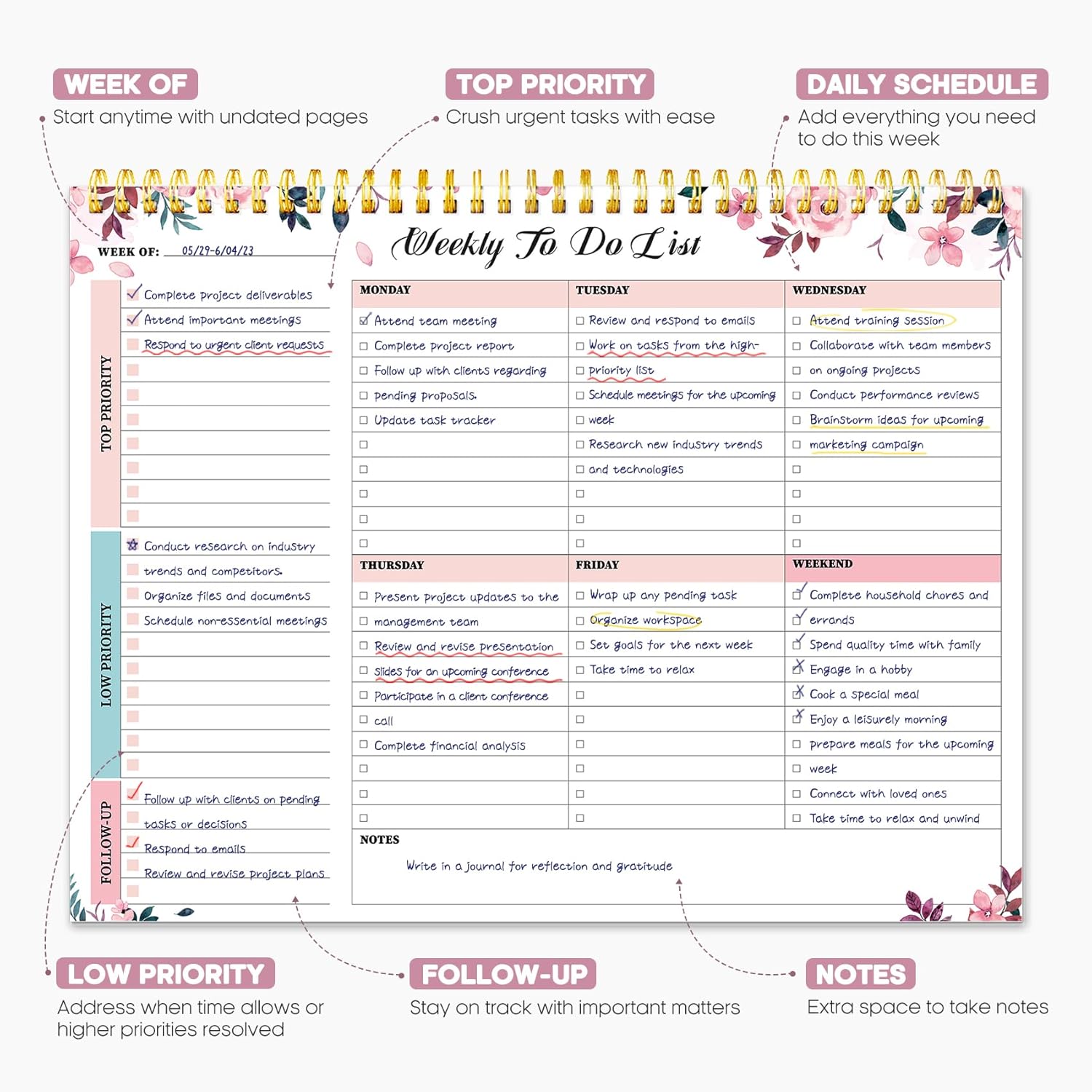 8 reviews for Weekly To Do List Notepad with 52 Undated Sheets(8.5″×11″)- Weekly Desk Planner for Women & Man, Work and Home – Whispering Petal